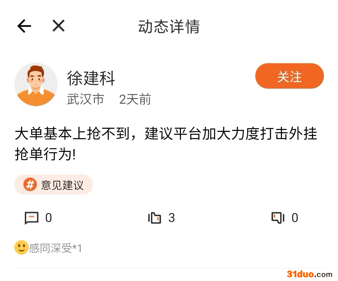 (徐师傅在司机社区上发表了“打击外挂”的建议)