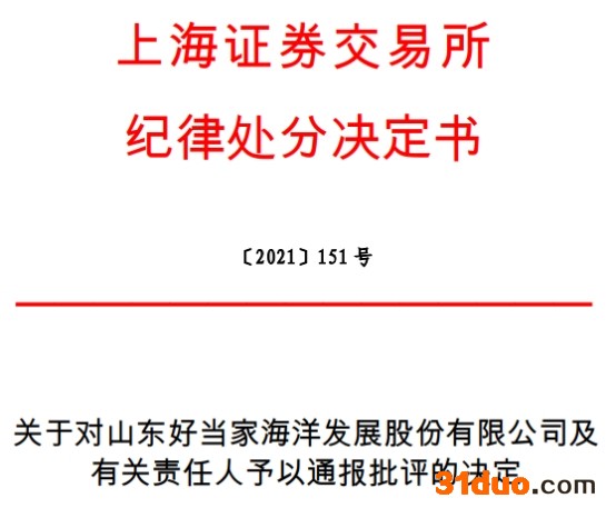 中国经济网北京11月30日讯 近日,好当家(600467.SH)收到了上交所下发的《关于对山东好当家海洋发展股份有限公司及有关责任人予以通报批评的决定》。