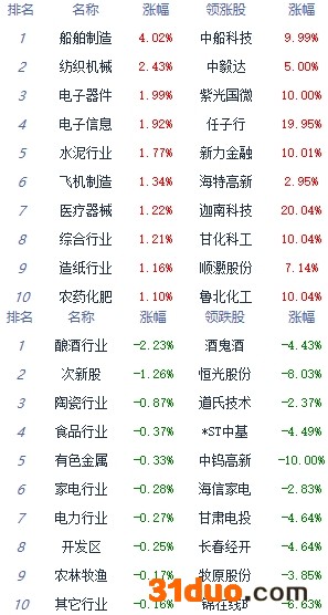 A股市场板块及个股涨跌幅排行