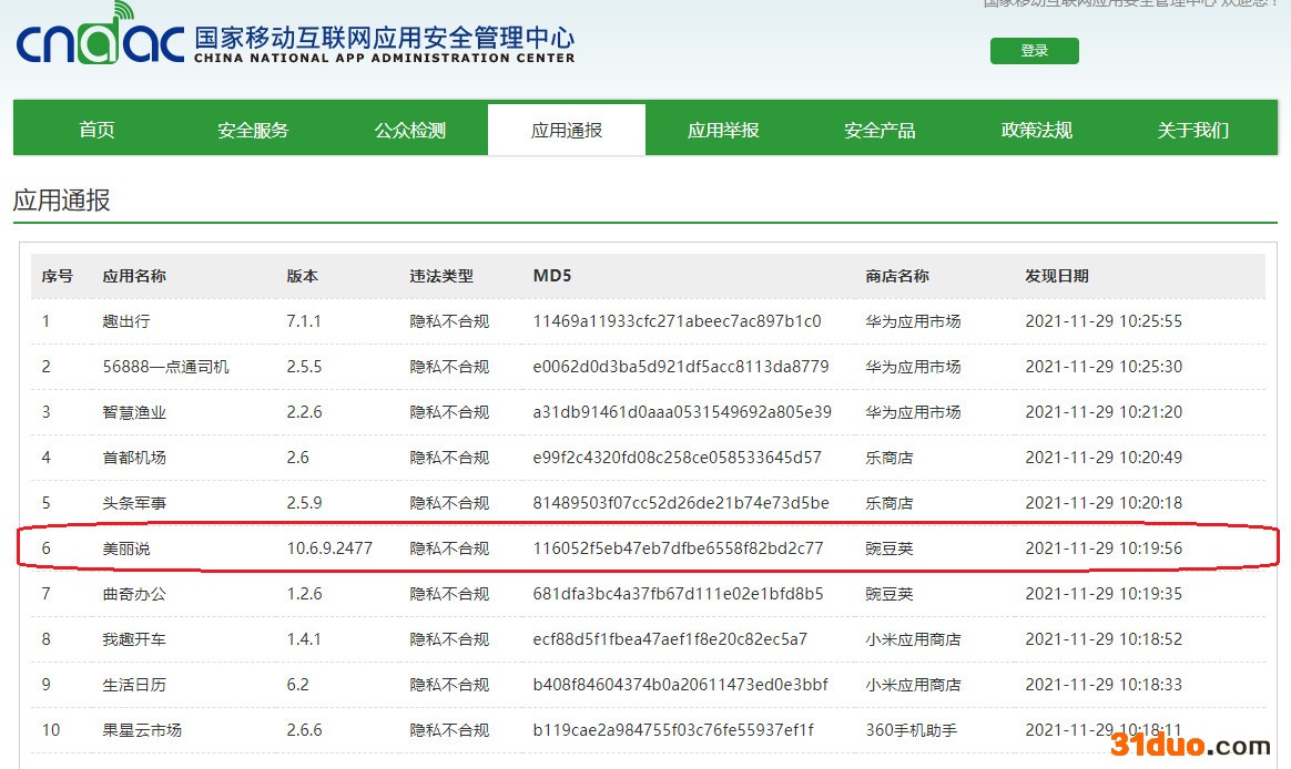 来源为豌豆荚的《美丽说》(版本10.6.9.2477)具体的涉嫌隐私不合规的行为包括:未向用户明示申请的全部隐私权限,涉嫌隐私不合规。