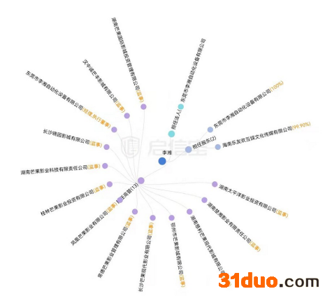 启信宝显示,截至目前,李湘旗下投资企业2家,其中1家已经注销,仅存东莞市李湘自动化设备有限公司存续,李湘持股100%;任职企业13家,在这些企业中,李湘担任法定代表人、股东、监事等职务,其中,湖南芒果国际影城投资管理有限公司已经注销。