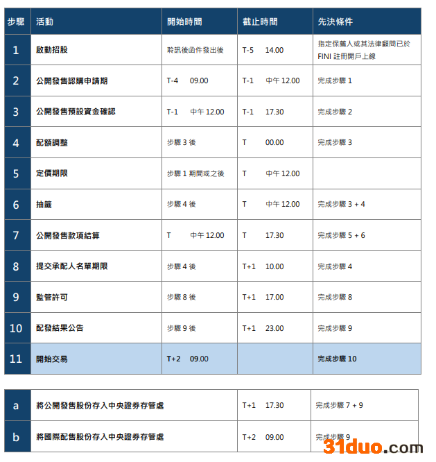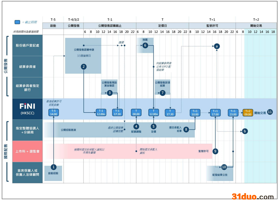 港交所报告还提到,在FINI平台推出之后,所有IPO 需按照"T+2"时间表进行公开招股结算程序。