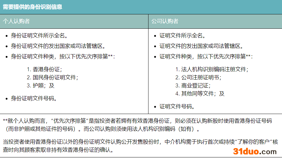 同时FINI平台将减少投资者重复认购新股问题,香港交易所曾表示,计划将对所有IPO认购者的身份识别要求与“在交易层面上对香港证券市场实施投资者识别码制度的建议”中列出的证券投资者身份识别要求相统一,随后香港证监会于2020年12月4日公布以征询市场意见,这也意味所有IPO认购者将强制要求提交。