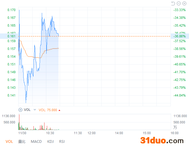 财联社(上海,编辑 周新旸)讯,因周焯华被捕事件,太阳城集团(01383)29日短暂停止交易,当天晚上公司就该事件发澄清公告,并称周焯华有意辞任公司董事会主席。但该份澄清公告似乎在周二未能起效,公司复牌后,股价直泄超过40%,截止发稿,其股价仍跌36%,报0.162港元。