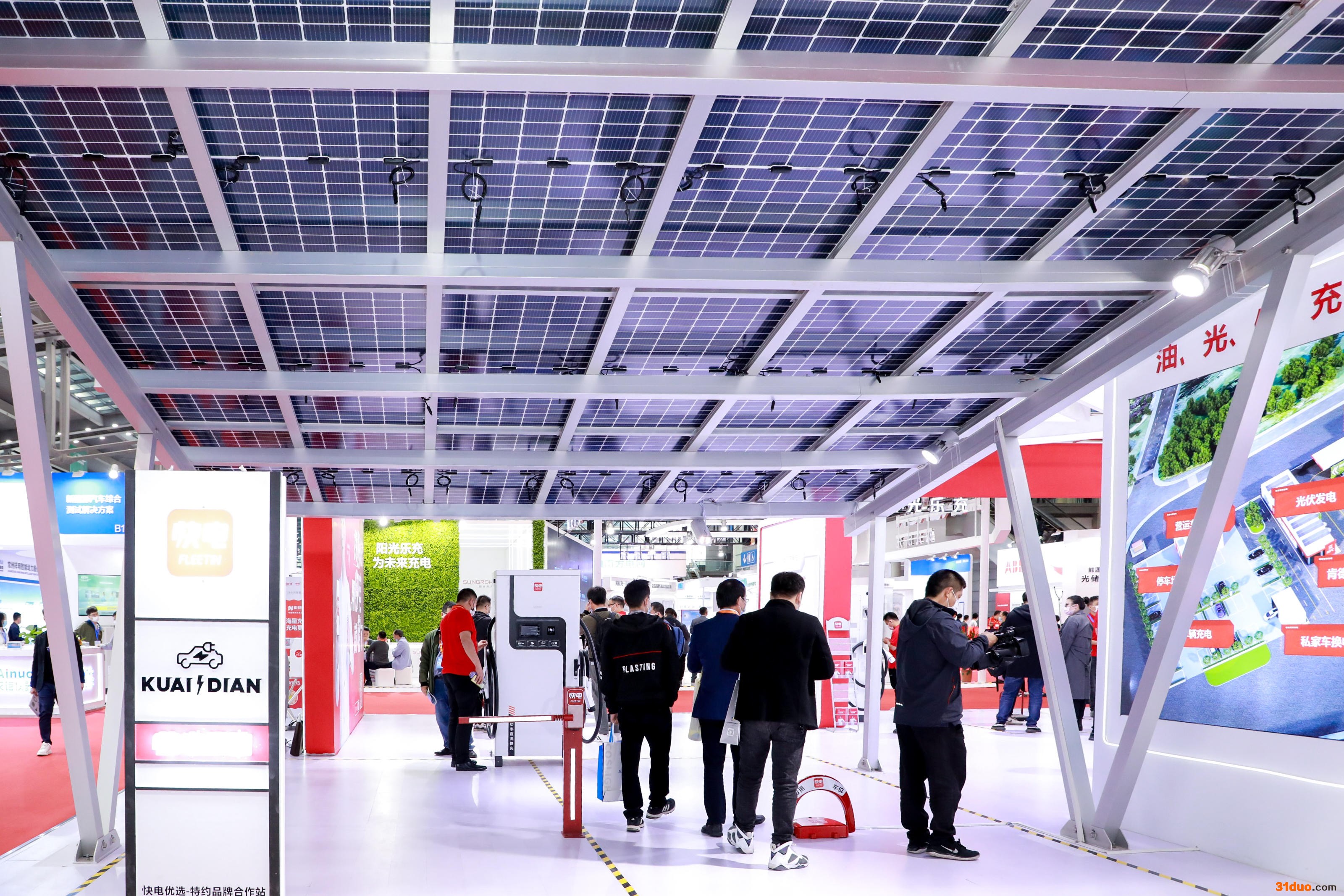 光伏发电棚是快电展台一大亮点。在双碳目标下,快电积极把握新能源红利,助力清洁、高效能源使用,帮助充电桩运营商利用光伏电能为电动汽车充电。据悉,光伏发电与充电的结合,可为电动汽车用户提供智能、高效、环保、便捷的充电服务。依托光伏发电棚建设的光充超级充电站也成为快电推动碳减排、助力交通能源实现碳中和的又一创新实践。