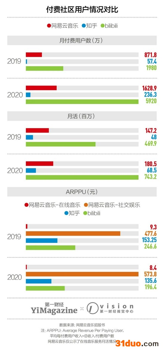 除直播业务外,进一步发展社区也被列入网易云音乐未来发展计划之中。作为公司的金字招牌之一,付费社区的月活与ARPPU会直接影响这一部分的变现能力。