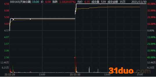 从当天开始,天瑞仪器股价连续“20cm”涨停。
