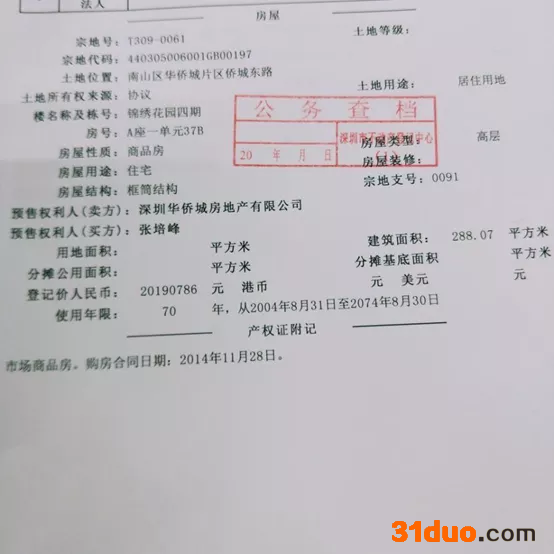 平台资料显示,被拍卖的深圳市南山区华侨城片区侨城东路锦绣花园四期A座一单元37B房产,不动产证号:粤(2016)深圳市不动产权第0112816号;总建筑面积为288.07平方米。