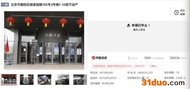 今年9月,乐视大厦就被进行过司法拍卖。但当时因为有案外人向北京市三中院提出申请,导致乐视大厦此次拍卖在开始半小时后就叫停并中止。