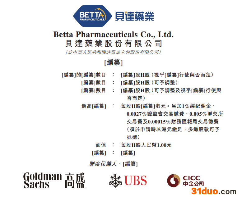 财联社(上海,编辑 周新旸)讯,已在创业板上市的贝达药业(300558.SZ)在12月2日再次向港交所递交招股申请,高盛、UBS和中金为其主承销商。早在5月30日,贝达药业已经通过港交所聆讯,但之后IPO审核状态被标注为“失效”。