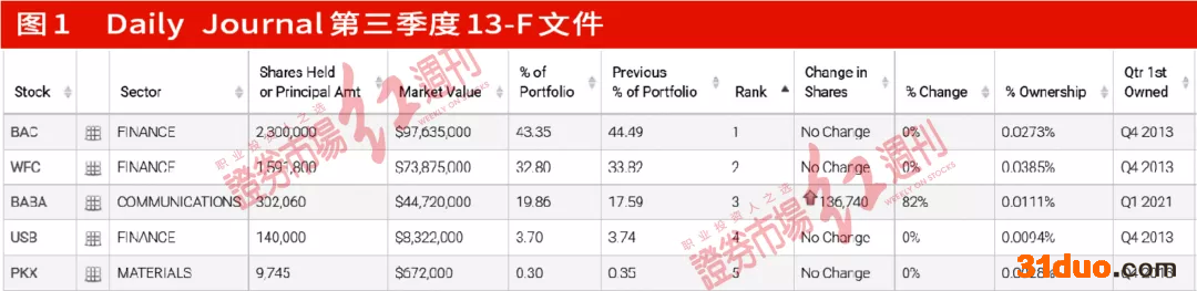 数据显示,Daily Journal于今年第一季度建仓阿里,在3月底的持股数为165320股,以当时的股价计算持仓市值约3750万美元。尽管此后阿里股价走入下行通道,开启一路下跌模式,但在二季度坚定持有阿里。最新的第三季度13-F文件显示,自7月份以来,Daily Journal将阿里巴巴的持仓数量又增加了82%。