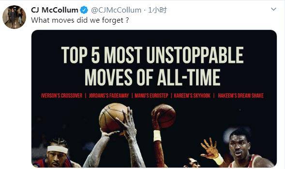 3月26日讯 开拓者球员CJ-麦科勒姆更新社交媒体,晒出了“历史上最难防的五大绝技”。