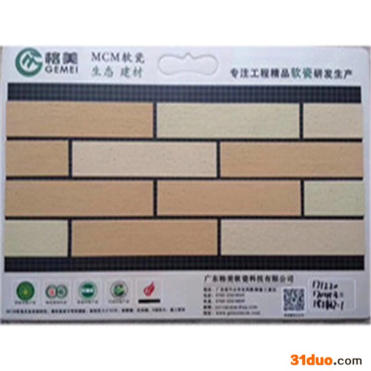 软瓷(MCM材料)是一种新型的节能低碳装饰材料,其作为墙面装饰材料,具有质轻、柔性好、外观造型多样、耐候性好等特点;施工简便快捷,比传统材料缩短工期,节约空间,节约成本,而且不易脱落。适用于外墙、内墙等建筑装饰,特别适用于高层建筑外饰面工程、建筑外立面装饰工程、城市旧城改造外墙面材、外保温体系的饰面层及弧形墙、拱形柱等建筑的饰面工程。