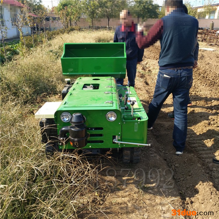 履带开沟施肥机是一款多功能田园果园管理机械;特点是开沟施肥/回填自动化一次性完成!固态化肥(颗粒/粉末);有机肥/厩肥都可以实现自动化完成。也可以单独开沟二次回填,还可以装配/旋耕犁/锄草机具!由于农家肥和化肥的肥料性质差别很大,这种开沟施肥机是您的选择!这种开沟施肥机的工作原理是由双叶片的螺旋式推进器横向将肥料排出下落到沟里;在整个机器开沟幅宽内均匀施肥。 适用性强:适用各种山地,丘陵、平原、旱田、大棚、果园、及狭窄地作业,省心。适合各种土质:冻土、硬土、粘土、黑土地,山地,软土均可使用. 履带式开沟施肥机可以实现大型机械无法进入的果园、小块土地、大棚、茶园、丘陵、山地等不同的地形和土质进行作业。 多功能 履带式开沟施肥机安装上不同的配件可以进行单独旋耕、回填、单独开沟、施肥、也可混合搭配使用。产品结实耐用,性能优越,操作方便.耐用:机身加厚,密,履带式行走,可进行原地转向。刀具都是加厚75号猛钢锻造,非常耐磨耐用,工作效率高. 二、产品特点 1. 机身加厚、重心低、通过性强、结构简单、操作方便、价格低廉; 2.开沟施肥回填埋肥一次完成,可原地转向,适用于过道空间狭窄; 3.施肥,每米用肥量很低,产品节能经济; 4.开沟速度快慢可调,可根据工作需求来调整快慢,可靠性好。 5.大功率发动机和双履带式设计,让这款产品适应各种地形,有上山爬坡能力。 6.回填和旋耕作业,减轻了农业生产的劳动强度,履带式行走,提高了生产效率,同时又节约了劳动和生产成本。 外形尺寸 长宽高2490*1000*750MM 机器重量: 680KG 开沟宽度 :30厘米 开沟深度: 35厘米 施肥深度 :30厘米 旋耕幅宽 : 90厘米-120厘米可选配 锄草幅度 :90厘米 回填宽度 :100厘米 配套动力 :