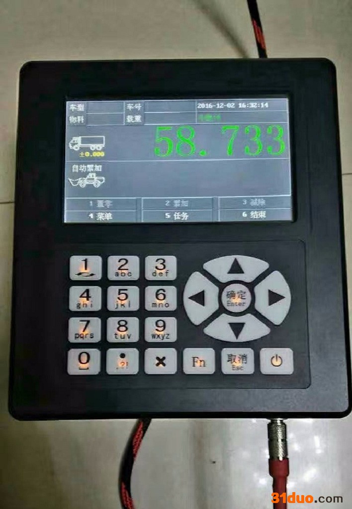 装载机电子秤的用途:用于各种散料,如煤、有色矿、砂石、花岗岩、土方等商业计量,同时也用于控制散料的过载装运。使用精科牌装载机电子秤在散料装卸的同时进行动态计量,具有许多优越性,有效提高了工作效率和运营安全,大大节省了装载机用户装卸的时间和成本费用,并有效解决货物运输中的超载和亏吨问题。JK1000C型号装载机系列装载机电子秤是安装在行走机械驾驶室里的全自动动态衡器。装载机电子秤的称重方式是全自动动态称重方式,即在动臂提升的过程中进行称量,动臂无需在提升中停顿。该电子秤可显示每一斗中物料的重量,同时自动累加并同步显示装入火车的物料的累计重量。当翻斗提升至高处,斗中的物料重量**自动被称量,然后翻斗翻转使物料卸到火车里,翻斗呈空斗状态,这时翻斗中物料的重量**会自动累加到累加重量值上。 精科牌JK系列装载机系列电子秤采用四个传感器作为测量元件,包括进油传感器,回油传感器,上位置传感器,下位置传感器四个传感器,通过多组采样数据,再经过微机处理器修正补偿处理计算后,以达到可靠的精度和稳定性。