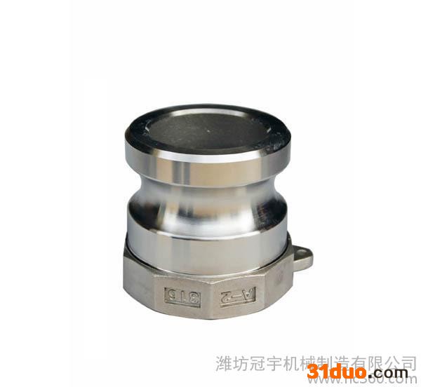 材料:不锈钢304、316 规格:1/2”、3/4”、1”、1-1/4”、1-1/2”、2”、2-1/2”、3”、4”、5”、6” 通径:DN15、DN20、DN25、DN32、DN40、DN50、DN65、DN80、DN100、DN125、DN150 正常压力: 6.4mpa 适用范围:啤酒、乳品、制药、水电工程、石油业、化工及机械制造等领域 适用介质:气体、水、油、及一些腐蚀性液体 连接方式:内螺纹、外螺纹、焊接、接软管、配法兰等 产品型号:A、B、C、D、E、F、DC、DP 快速接头说明:快速接头是一种既不需要工具又能实现迅速拆装的管接头。 快速接头特点,这种管接头使用轻巧灵便、干净利索、广泛应用于液压、气动和润滑流体输送等管路系统中,在急需经常拆装的管路中尤为适用。 液压快速接头,是液压系统中用途广泛的一种管件,它具有不用专门工具即可迅速装拆液压管路的特点。带有密封装置的快速接头还具有防止液体外漏及空气进入的特点,快速接头适用于以油、水、空气为介质的场合,公称压力为10kg/cm,介质温度为-20℃,被广泛用于农业机械、矿山机械、工程机械、航空机械及其他机械之中。我公司生产的液压快速接头有A型,B型,C型,D型,F型,E型,DC型,DP型,其中B,C,E,F型都可以配法兰使用 快速接头选型原则: 1.根据内管管径选双向型(如设备内管为3/4",可选1-1/2"-3/4") 2.根据输送流体管管径选单向 3.根据说明书中各规格型号的参数,计算流量选型 4.快速接头份螺纹连接和法兰连接两种,如使用设备始终向一个方向旋转,可选择螺纹连接或法兰连接,外管螺纹分左右旋向,选择方法:站在装快速接头的方向看设备的旋向,选择外管螺纹旋向应和设备的旋向相反,半分版式法兰左右旋转均可。法兰连接分为两种:螺纹法兰(外管配内螺纹的法兰)和半分环式法兰,半分环式法兰适应于右、左方向旋转的设备。法兰的有关参数一般由用户提供,或注明按国标生产。 5.快速接头与输送管道不允许钢性连接,必须有一段软性管过渡连接,可选用我公司生产的不锈钢金属软管。 6.用户可提供以下参数,由我公司帮助选型:内管管径;设备直径、长度和宽度;转速、压力、温度;与设备的连接管径;输入、引出管管径;法兰尺寸;工作介质等 欢迎来电咨询 快速接头详细说明: A型快速接头简述:A型快速接头是一个公头,它两边没有拉耳,它一头的连接是与有拉耳的母头直接卡的,另一头则是内螺纹连接。 B型快速接头简单说明:B型快速接头两头各有一个拉耳、属于母头、它一头是与公头连接直接卡的、另一头则是外螺纹连接。 C型快速接头简要说明:C型快速接头,有两个拉耳,属于母头,它一头是与公头直接卡的,另一头是直接插软管(皮管)的所以也可以把C型快速接头称为皮管快速接头或软管快速接头 D型快速接头简单说明;D型快速接头是一个母头,两边各有一个拉耳。之所以叫D型快速接头是因为它一头的连接是直接用拉耳卡的连接拆卸快捷方便,另一头则是内螺纹连接 E型快速接头简介:E型快速接头是一个公头,它没有垃耳通常是和有拉耳的快速接头配套使用这样才能起到快接快拆的效果,它一头的连接方式是和母头直接卡的,另一头则是直接插到皮管、软管里面。 F型快速接头简介:F型快速接头是一个公头,它两边没有拉耳,所以它一般是和有拉耳的母头配套使用,这样才能达到快速拆卸安装的效果,所以它的一头是直接和有拉耳的母头直接卡的,而另一头则是外螺纹连接 DC型快速接头简介:DC型快速接头是一个母头,它两边各有一个拉耳,它只有一头连接是直接卡的另一头则是一个堵头的形式,这是一种全新堵头 DP型快速接头简要说明:DP型快速接头因为它是一个堵头的形式所以也可以把它叫为快速堵头,它是一个公头只有个头连接是直接卡的,另一头则是堵住的