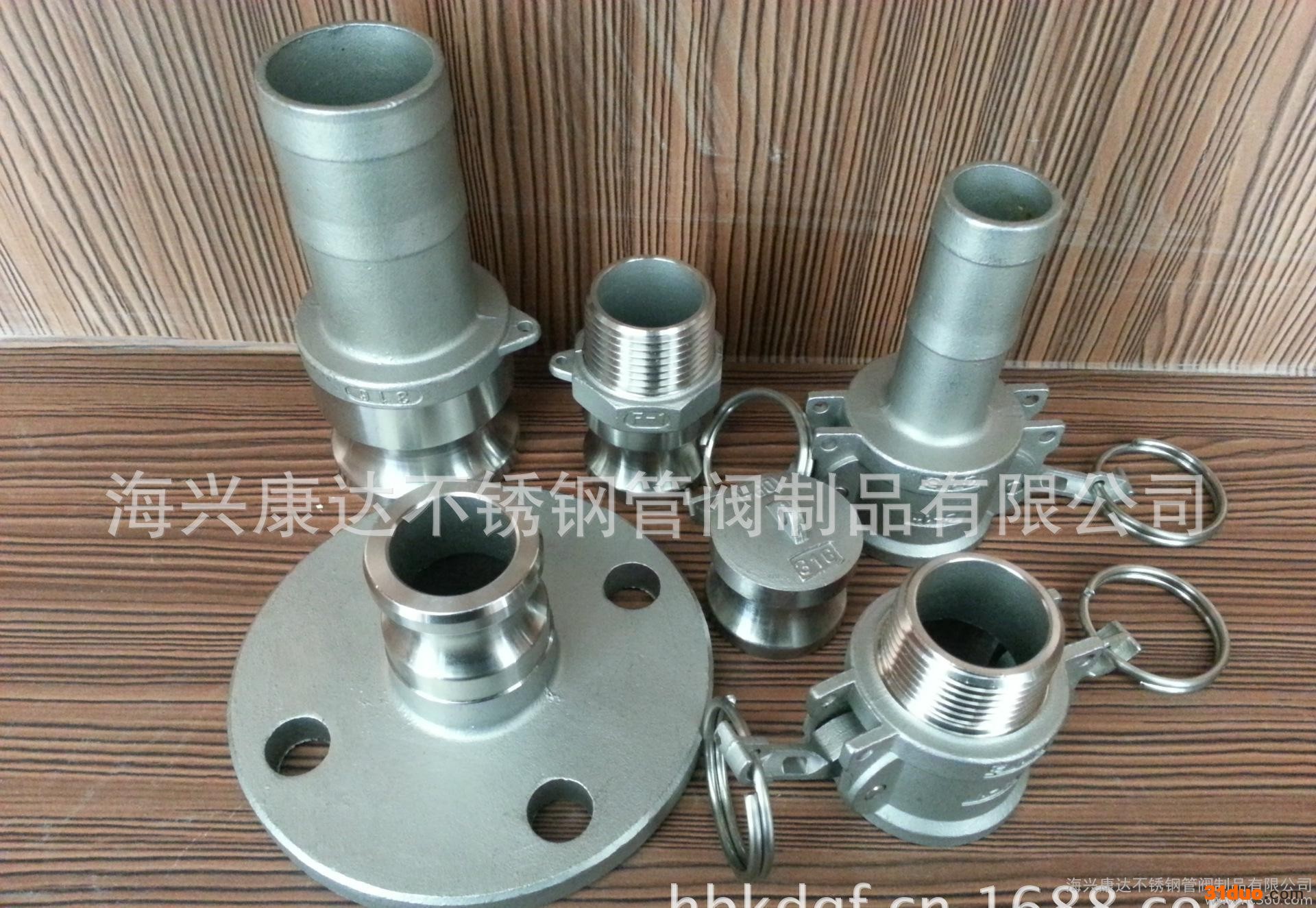 r公司总部设在河北省海兴县城关镇献庄工业园区,康达不锈钢制品有限公司拥有完整、科学的质量管理体系。我公司的诚信、实力和产品质量获得业界的认可。年生产能力200吨,……rrr 材料:不锈钢304、316rrr 规格:1/2”、3/4”、1”、1-1/4”、1-1/2”、2”、2-1/2”、3”、4”、5”、6”rrr 通径:DN15、DN20、DN25、DN32、DN40、DN50、DN65、DN80、DN100、DN125、DN150rrr 正常压力: 6.4mparrr 适用温度:-20℃~ 232℃rrr 适用范围:啤酒、乳品、制药、水电工程、石油业、化工及机械制造等领域rrr 适用介质:气体、水、油、及一些腐蚀性液体rrr 连接方式:内螺纹、外螺纹、焊接、接软管、配法兰等rrr 产品型号:A、B、C、D、E、F、DC、DPrrr 快速接头说明:快速接头是一种既不需要工具又能实现迅速拆装的管接头。rrr 快速接头特点,这种管接头使用轻巧灵便、干净利索、广泛应用于液压、气动和润滑流体输送等管路系统中,在急需经常拆装的管路中尤为适用。rrr 液压快速接头,是液压系统中用途广泛的一种管件,它具有不用专门工具即可迅速装拆液压管路的特点。带有密封装置的快速接头还具有防止液体外漏及空气进入的特点,快速接头适用于以油、水、空气为介质的场合,公称压力为10kg/cm,介质温度为-20℃,被广泛用于农业机械、矿山机械、工程机械、航空机械及其他机械之中。我公司生产的液压快速接头有A型,B型,C型,D型,F型,E型,DC型,DP型,其中B,C,E,F型都可以配法兰使用rrr 快速接头选型原则:rrr 1.根据内管管径选双向型(如设备内管为3/4",可选1-1/2"-3/4")rrr 2.根据输送流体管管径选单向rrr 3.根据说明书中各规格型号的参数,计算流量选型rrr 4.快速接头份螺纹连接和法兰连接两种,如使用设备始终向一个方向旋转,可选择螺纹连接或法兰连接,外管螺纹分左右旋向,选择方法:站在装快速接头的方向看设备的旋向,选择外管螺纹旋向应和设备的旋向相反,半分版式法兰左右旋转均可。法兰连接分为两种:螺纹法兰(外管配内螺纹的法兰)和半分环式法兰,半分环式法兰适应于右、左方向旋转的设备。法兰的有关参数一般由用户提供,或注明按国标生产。rrr 5.快速接头与输送管道不允许钢性连接,必须有一段软性管过渡连接,可选用我公司生产的不锈钢金属软管。rrr 6.用户可提供以下参数,由我公司帮助选型:内管管径;设备直径、长度和宽度;转速、压力、温度;与设备的连接管径;输入、引出管管径;法兰尺寸;工作介质等rrr