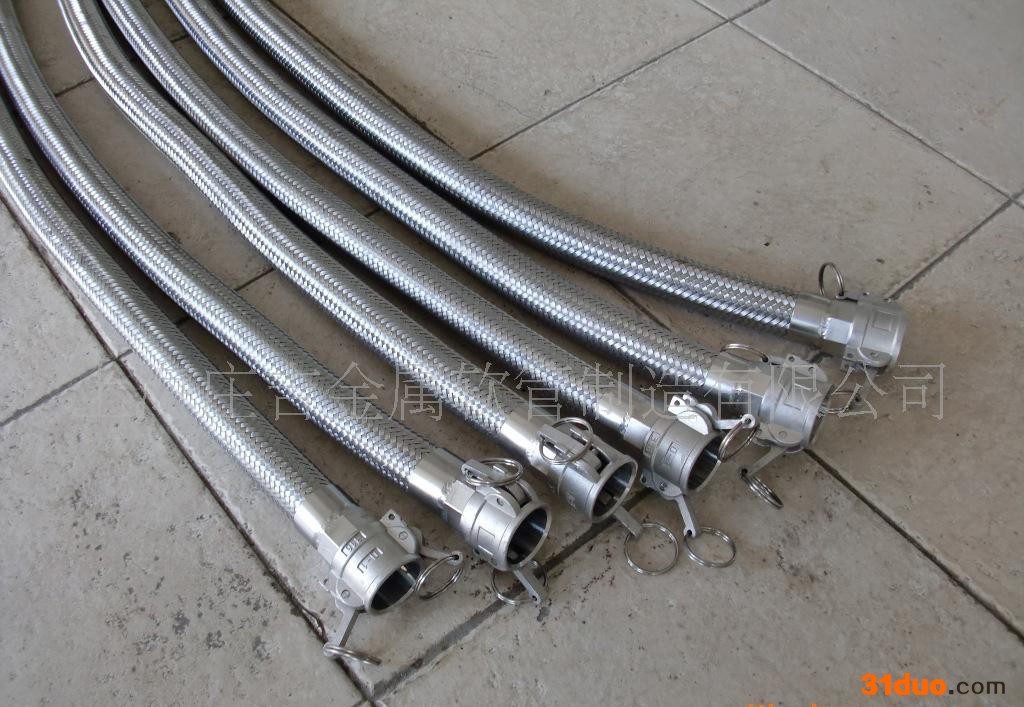 r 我公司生产的金属软管其管体采用先进环形波结构,秉性好、变形性能强、疲劳寿命高,成功运用于蒸汽、热风类的高温介质,液氢、液氧、液氮类的低温介质,汽油、煤油、酸碱等腐蚀性介质,都可以安全可靠地来输送。r r r 金属软管系列:r r r 不锈钢金属软管是现代工业管路中性能优良的柔性件。结构是不锈钢波纹管外编一层或多层钢丝或钢带网套,两端配以接头或法兰头,用于输送各种介质。其特点:耐腐蚀、耐高、低温(-196℃~+420℃),重量轻,体积小,柔软性好。r r r 主要用途:r r r 1.输送具有腐蚀性的化工介质或有机溶剂。(如:氮水、丙酮等)