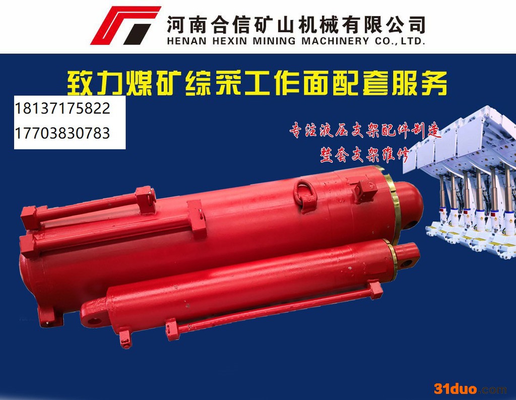 河南合信矿山机械有限公司是一家煤机定点生产单位,生产各种支撑式、掩护式、放顶煤液压支架配件,包括液压支架立柱、千斤顶、油缸、前梁、推杆、护帮板、电液控、安全阀、操纵阀组、销轴、导杆、压块、胶管总成、中间接头、挡圈、整套密封、螺母、螺栓、开口销、连接头、十字链、开口销、保护套等。