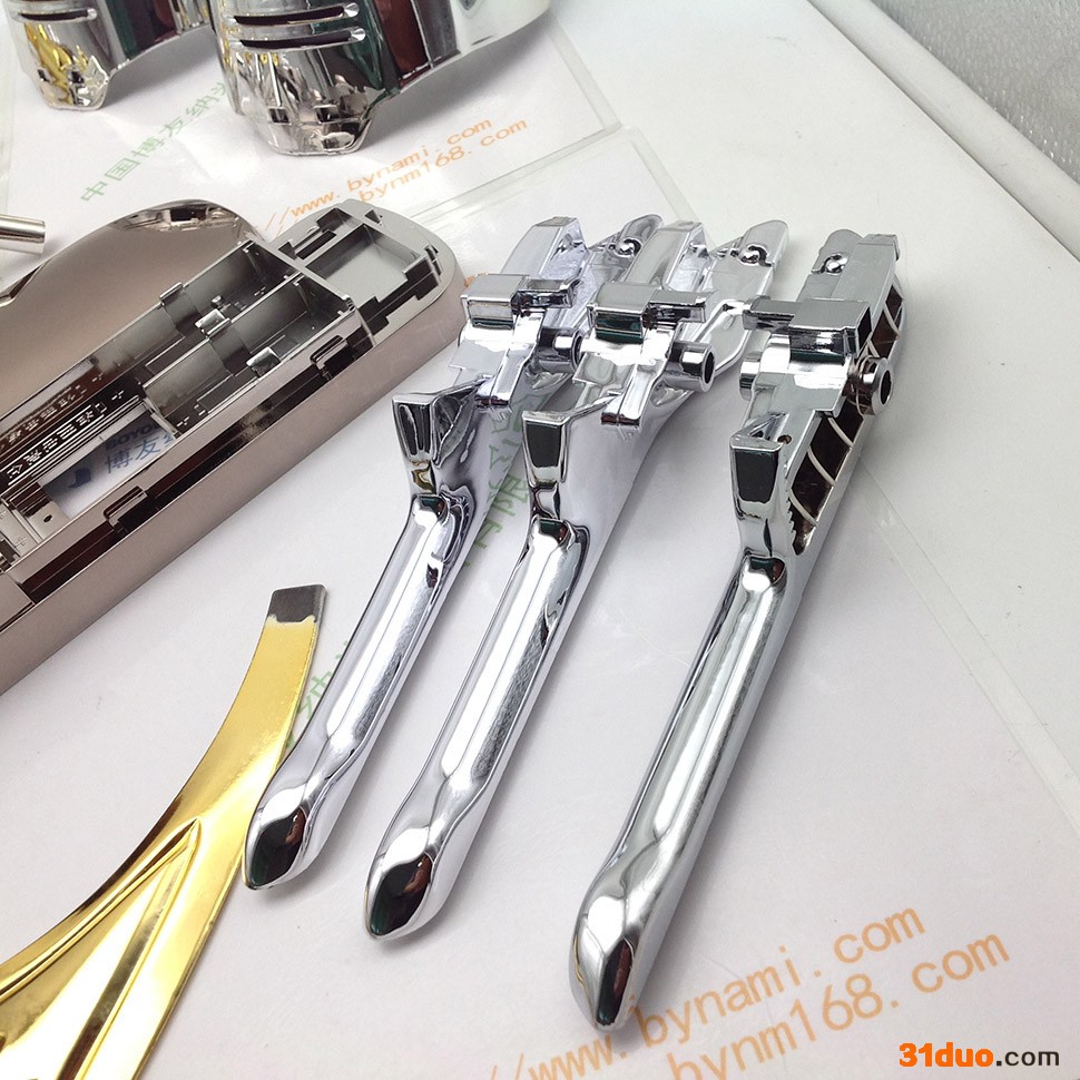 新型纳米喷镀相对于传统电镀来说,主要有六大优势: 1. 绿色环保,无三废排放 2. 加工不受产品大小形状限制 3. 加工颜色随心所欲,可呈现金、银、铬、古铜及各种色彩 4. 投资少、成本低,无需大型规模和设备 5. 使用安全,即使不小心沾到手上也不会有任何伤害 6. 操作简单,无需抛光,无需做导电层 纳米喷镀广泛用于金属、树脂、发泡,木材、陶瓷、玻璃、塑胶等各种材质,主要应用于工艺品、饰品、家俱、广告字、汽车、电器电子等各行业。 如果对我司工艺感兴趣,可以寄样品来我司,我司免费打样看效果。 联系人:李先生 13925597214