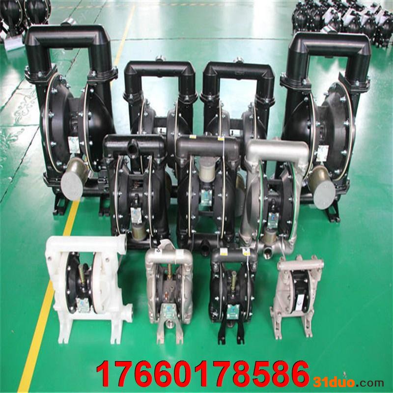 BQG气动隔膜泵 bqg气动隔膜泵 气动隔膜泵bqg 气动隔膜泵厂家 气动隔膜泵 气动隔膜泵报价 气动隔膜泵专业厂家 气动隔膜泵,口径范围从2分(6mm即1/4英寸)至3英寸(76mm);流量范围19升至897升每分钟。 气动隔膜泵分为两种: 一、金属泵系列:有不锈钢、铝合金、铸铁、碳钢、哈氏合金泵体。 二、非金属泵:塑料聚丙烯(PP)、聚偏氟乙烯(PVDF)、乙缩醛及纯特氟龙等材质的泵体。 三、弹性体隔膜片;有特氟龙膜片,耐高温177℃的氟橡胶膜片、山道橡胶膜片、丁晴橡胶膜片、氯丁橡胶膜片等。 气动隔膜泵特征及优点: 1.适用化工行业中高、中、低各种粘度各种酸、碱及腐蚀性流体和各种溶剂的输送。 2.适用于贵重液体,高危害性,高腐蚀性等危险物料的输送,因为气动隔膜泵无动密封结构,与外界完全隔开,绝无泄漏; 3.适用于恶劣工作条件如油田,矿山,建筑工地的含固体颗粒的废水。 4.适用于作为轻便可移动场合下各种物料的输送,无需地基,占地小,灵活,安装简便。 气动隔膜泵主要运用在以下方面: 1.油轮/客车/火车卸料2.大型罐/罐区输送3.废水处理4.化工生产5.普通输送/供给6.包装/填充7.批量处理/混合8.系统冲洗9.循环/回收。通用工业和OEM成套装置。海事:(排放和输送:1.污水2.海水3.柴油)。电子:(排放和输送:1.废水2.强酸3.强碱)。汽车:(供应和输送:1.密封剂2.粘接剂3.电镀溶剂4.油漆)化工生产:(1.肥皂2.清洁剂3.清洁/擦亮剂4.油漆/染料5.粘合剂6.油墨7.针对剪切敏感物料)煤矿:(排放:1.污水2.混水3.稀泥浆)医药:(食物及药物物料、供应和输送:1.FDA物料)