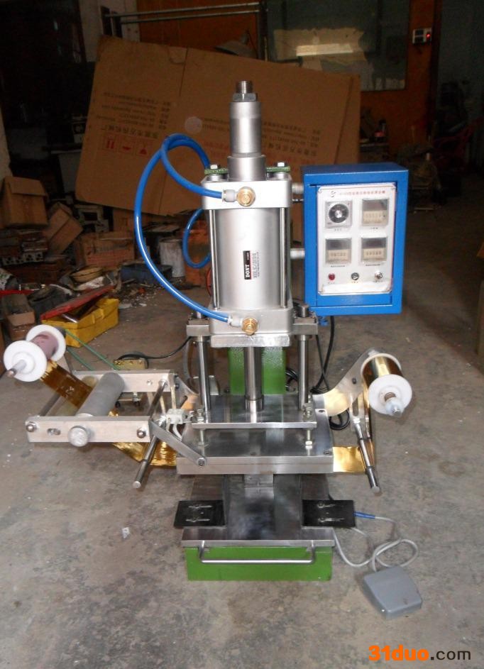 制器控制烙印时间,能对鞋垫、皮带、皮包、卡片、塑胶制品等小型面积进行烫印或平面烫金。有金箔