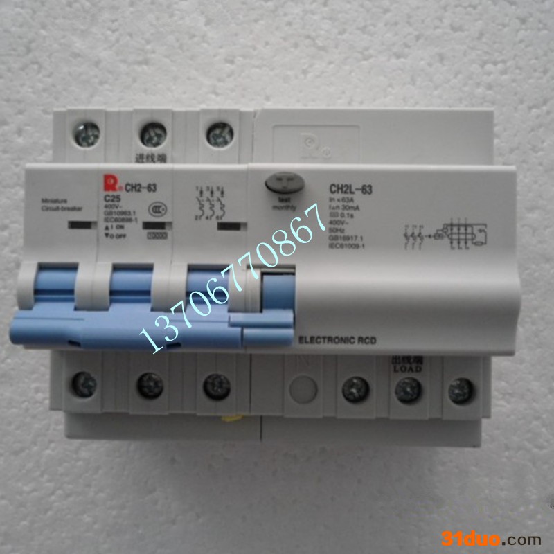 常熟开关厂漏电断路器:CH2L-63C25/3 3P C25A 30mA 冲钻特价~