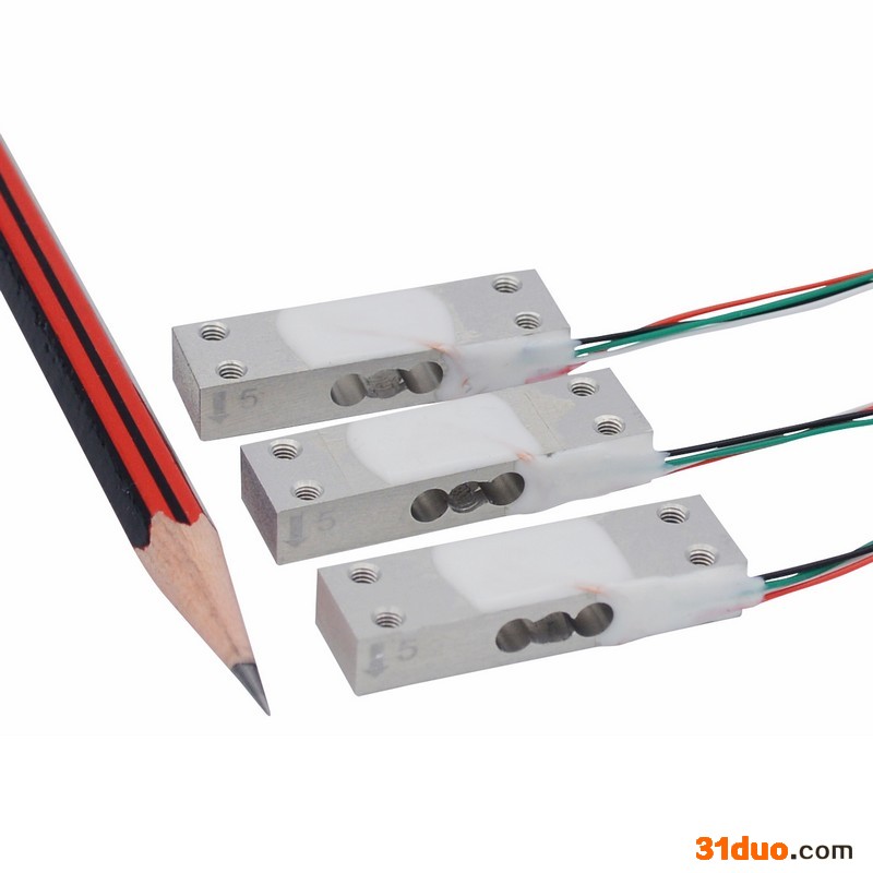 小尺寸荷重传感器1kg/2kg/5kg/10kg小型负荷传感器厂家 小尺寸荷重传感器FMZK采用铝合金材质,尺寸小,重量轻;精度高,非线性误差优于满量程的0.05%。称重范围有0-0.5kg、0-1kg、0-2kg、0-5kg、0-10kg可选。小型负荷传感器FMZK采用1000欧姆高阻抗电阻应变计,功耗低,适用于电池供电的便携式称重设备。此款重量传感器批量价格低,性能稳定,适用于批量生产的消费电子产品称重监测,如自动咖啡机重量监测,自动售货机,自动化仓库设备等。小巧的尺寸结构也使得FMZK经常被用于高校力学实验。