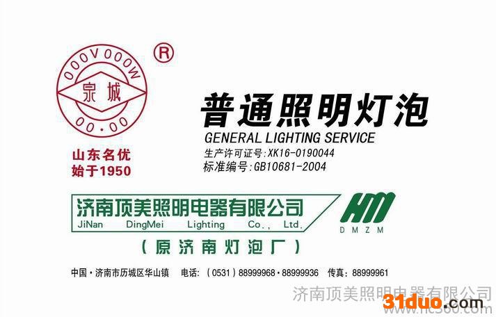 生产、销售 百年“泉城”品牌 普通/低压照明 灯泡 顶美照明