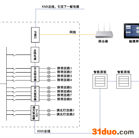 自动控制:在停车场、走道、梯厅等公共区内安装传感器,实现自动控制。传感器可监测当前环境有无车/人进入或者离开,若没有车开动或没有人走动时,灯不会亮;有车动作或人走动时,受控区域内灯亮,人/车走后,灯延时灭。 手动控制:在值班室、电梯口、房间等位置安装智能面板、触摸屏,实现现场手动控制。面板/触摸屏可实现一对一、一对多控制。现场控制的灯在电脑端也可集中控制。 场景控制:系统根据不同场景的控制需求,预先设定多种场景模式,在面板/触摸屏/中控界面都可设置场景开关。系统正常运行时,由工作人员进行自由切换。 定时控制:对于一些用时比较固定的项目,如:景观照明、办公大楼、银行、学校等。可根据客户需求或者用户开灯关灯的时间规律,设置定时开关,完成照明系统的自动控制,确保在低峰期内的能源消耗**小。 消防联动:智能照明系统可与消防系统联动控制,当有火灾报警信号时,强制点亮应急灯,为人们安全撤离提供生命之光。 电脑集中监控:所有智能照明回路在电脑端实现集中控制,且实时反馈现场回路的开关状态,方便值班人员远程监控。