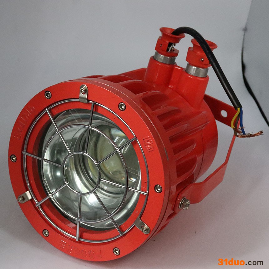 : 1.矿用隔爆型LED的投光灯由壳体、前盖总成、后盖、支架、安装托盘和LED总成组成。壳体、前盖、后盖均为国标102铸铝制成,强度较高,具有一定的抗冲击性能能。前盖总成由前盖、透明罩、可压缩衬垫、压圈、钢丝网等组成。透明罩为钢化玻璃,透光率高,耐冲击性能强。 2.LED总成由LED光源、散热器、LED恒流驱动器以及透镜组成。LED光源为70W大功率集成光源;散热器是LED专用的散热器;恒流驱动器由恒流源电路板和罩壳组合,然后用FM705密封圈胶密封,具有抗震、防水等特点,恒流驱动器提供恒定的电流供LED工作,从而可以有效提高LED的工作寿命。加装透镜使其发光聚拢,照射距离远、亮度大,减小光损。 3.前盖加装加装钢丝网,有效的防护了前盖上的钢化玻璃,使其安全性更高。 4.安装更加简易、方便。