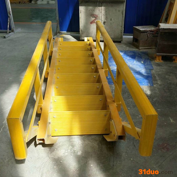 是采用玻璃钢**玻璃钢拉挤型材,通过一定装配工艺制成。玻璃钢爬梯拥有爬梯 的大部分特性,但也有其显著的不同之处,玻璃钢爬梯重量轻且安装方便无需焊接,玻璃钢爬 梯耐腐蚀性强不会生锈,长期使用无需维护降低费用。玻璃钢爬梯颜色鲜艳美观,无须外部装 饰自成一景。