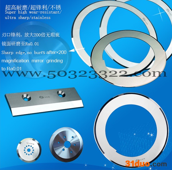 圆切刀片(玻璃、玻璃管、LD、石英等)硬脆材料超高耐磨型的切割、切断、压痕用)。刃口坚硬耐磨,锋利(在显微镜下观看,刃口锋利一致,无缺口。用手拿刀片在玻璃管或石英管上轻轻**能划出痕迹,不会出现打滑现象)。选用的钻石钢具有极高的耐磨耗性能,相应一般钨钢,具有3~6倍以上的使用寿命。(可生产任意外径、内径、厚度、切割角度等尺寸公差要求的制品,耐用性、锋利性无以伦比)。采用德国钨钢素材和日本富士设备精密成型研磨加工。