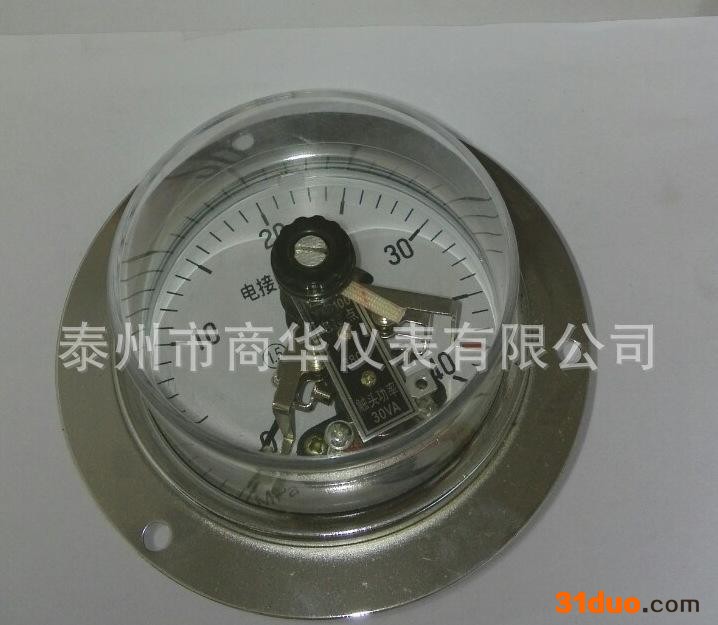 电接点压力表,适用于环境剧烈振动场合,可耐介质的高强脉动冲击及突然卸荷;通常该仪表经与相应的电气器件(如继电器及接触器等)配套使用,即可对被测(控)压力系统实现自动控制发信(报警)的目的,与普通专用型电接力压力表相比,指针测压性能更稳、准,且抗电弧强大,使用寿命更长。