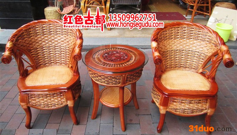 【宝贝名称】:通花藤椅茶几 三件套 【宝贝特点】:藤棒框架,厚重结实,并且采用宽藤片编织,凉爽舒适,坚韧耐用,扶手和靠顶部分为藤枝排列和藤皮包裹,藤的韵味充分得到体现,冬天加上布垫,也温馨暖和。 我们所有产品都是刚才生产一线下来打包发给你们。因为藤需要晒干后在进行编制,有些脆。你们拿到宝贝后用温水加盐搽一搽。基本5天内**会非常光亮漂亮。藤的韧性也会很好。大家超市里面看到藤觉得很漂亮,那时因为使用过摆设过,每天有人搽所以觉得很漂亮。 【宝贝规格】:皇冠藤椅:长宽高58*58*95cm; 藤茶几:长宽高50*50*52cm。 藤制品属手工制作,尺寸会有偏差,望预知、理解。 【宝贝材料】:印尼藤 宝贝用料是来自印度尼西亚的天然藤料。印尼藤坚韧饱满,不易爆裂,杂色少,是制作藤制品的一级原材料。藤是生长于热带森林植物。编织藤长可超过185米。