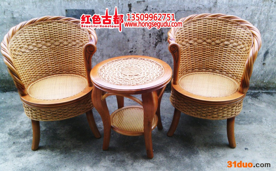 【宝贝名称】:通花藤椅茶几 三件套 r r r 【宝贝特点】:藤棒框架,厚重结实,并且采用宽藤片编织,凉爽舒适,坚韧耐用,扶手和靠顶部分为藤枝排列和藤皮包裹,藤的韵味充分得到体现,冬天加上布垫,也温馨暖和。 r r r 我们所有产品都是刚才生产一线下来打包发给你们。因为藤需要晒干后在进行编制,有些脆。你们拿到宝贝后用温水加盐搽一搽。基本5天内**会非常光亮漂亮。藤的韧性也会很好。大家超市里面看到藤觉得很漂亮,那时因为使用过摆设过,每天有人搽所以觉得很漂亮。 r r r 【宝贝规格】:皇冠藤椅:长宽高58*58*95cm; r r r 藤茶几:长宽高50*50*52cm。 r r r 藤制品属手工制作,尺寸会有偏差,望预知、理解。 r r r 【宝贝材料】:印尼藤 r r r 宝贝用料是来自印度尼西亚的天然藤料。印尼藤坚韧饱满,不易爆裂,杂色少,是制作藤制品的一级原材料。藤是生长于热带森林植物。编织藤长可超过185米。