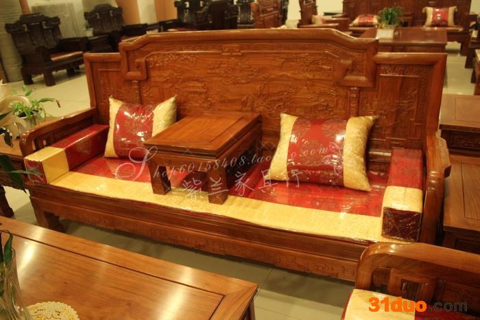 材料:非洲花梨木【学名:刺猬紫檀】 型号:cf020尺寸:长沙发:210*65*38*107CM【长 座深 座高 总高】单人沙发:100*65*38*107CM【座宽 座深 座高 总高】大茶几:133*88*45CM【长宽高】小茶几:60*50*53CM【长宽高】炕几:52*38*26CM【长宽高】组合:一张长沙发+俩张单人沙发+俩张小茶几+一张大茶几+一张炕几产品:非洲花梨木云里风光组合沙发七件套工艺:榫头结构 东阳木雕电话:15067991113 QQ:329815929