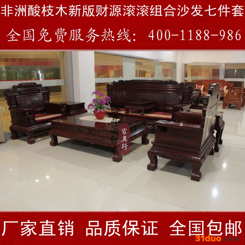红木家具/非洲酸枝木沙发/财源滚滚沙发七件套/实木沙发/客厅沙发