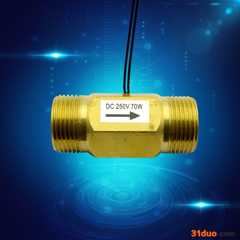 SEN-ZL43W水流开关DN20规格简要说明,6分重力式水流开关是利用铜浮子由下而上的活动带动永磁铁配合干簧管输出开关信号(0/1),靠永磁铁浮子的重力来复位,相对于机械性的弹簧更稳定更可靠,使用寿命更长,启动流量更小。全铜材质,压力1.5Mpa,使用水温在100°C以内,用于水和气体,仅可直立方向安装,水由下而上接入。接口方式:G3/4,外牙;材质:黄铜;规格:Φ32*56mm,线长320mm(两线,开关量信号,干簧管原理),流量范围(0.1Mpa内):5—18L/ min,误差为10%;安装方式:按入水箭头方向任意安装;特别提示:水流开关在使用中配合中间继电器使用,为了安全切不可直接接入高电压电路中。重力式水流开关有2分(SEN-ZL41W:2分外牙式,SEN-ZL41N:2分内牙式,也可定制内外牙复合型的),3分(SEN-ZL83W:3分外牙式,SEN-ZL83N:3分内牙式,也可定制内外牙复合型的),4分(SEN-ZL21W:4分外牙式,SEN-ZL21N:4分内牙式,也可定制内外牙复合型的),常规规格为22*62mm和24*64mm,定制产品的规格可依据客户的样品或图纸进行生产。具体电气参数如下 :启动流量:3.0L/分**大流量:20L/分,开关功率为70W**大开关电压:DC220V/AC250V**小击穿电压:DC400V**大开关电流:1A**大负载电流:1.5A;以上水流开关在使用中请勿直接接入高电压电路,请配合中间继电器使用,同时在使用时请加装过滤网,避免水流开关的磁性浮子被卡;不能安装在摇晃和震动的环境中,以防止水流开关产生误动作;不能在强磁环境中使用,以免使水流开关失效;水流开关是精密仪器,请勿擅自拆开以防损坏水流开关,凡擅自拆解过的水流开关均不在我司保修范围之内。如果在选型过程有不解之处请向我司销售人员咨询,在实际安装使用水流开关前请仔细阅读水流开关技术参数和接线电路图。生产厂家:赛盛尔传感器。