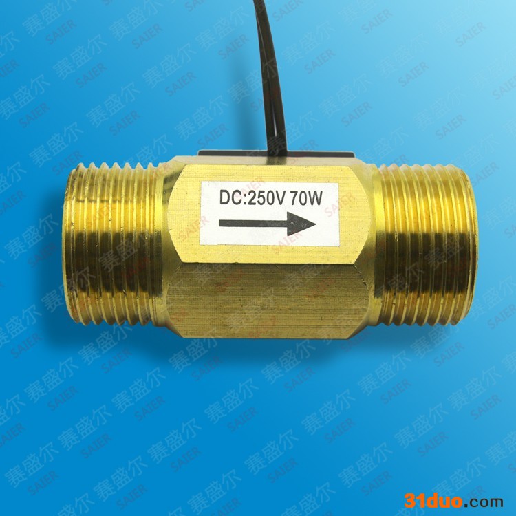 r SEN-CL43W水流开关DN20规格简要说明,6分磁力式水流开关是利用一对永磁铁浮子的磁性相斥力和水流的冲击力来相互作用,配合干簧管输出开关信号(0/1),靠永磁铁之间的相斥力来复位,相对于机械性的弹簧更稳定更可靠,使用寿命更长,启动流量更小。全铜材质,压力1.5mpa,使用水温在100°C以内,用于水和气体,可任意方向安装。接口方式:G3/4,外牙;材质:黄铜;规格:Φ32*60mm,线长320mm(两线,开关量信号,干簧管原理),流量范围(0.1Mpa内):2—18L/ min,误差为10%;安装方式:按入水箭头方向直立安装;特别提示:水流开关在使用中配合中间继电器使用,为了安全切不可直接接入高电压电路中。水流开关在使用中配合中间继电器使用,为了安全切不可直接接入高电压电路中。磁力式水流开关有2分(SEN-CL41W:2分外牙式,SEN-CL41N:2分内牙式,也可定制内外牙复合型的),3分(SEN-CL83W:3分外牙式,SEN-CL83N:3分内牙式,也可定制内外牙复合型的),4分(SEN-CL21W:4分外牙式,SEN-CL21N:4分内牙式,也可定制内外牙复合型的)和插管式(SEN-CL10C:10mm插管式,可定制6mm/8mm/12mm等规格)等常规产品,常规规格为20.5*62mm和24*62mm,定制产品的规格可依据客户的样品或图纸进行生产。具体电气参数如下 :启动流量:2.5-3.0L/min**大流量:18L/分,开关功率为70W**大开关电压:DC220V/AC250V**小击穿电压:DC400V**大开关电流:1A**大负载电流:1.5A;以上水流开关在使用中请勿直接接入高电压电路,请配合中间继电器使用,同时在使用时请加装过滤网,避免水流开关的磁性浮子被卡;不能安装在摇晃和震动的环境中,以防止水流开关产生误动作;不能在强磁环境中使用,以免使水流开关失效;水流开关是精密仪器,请勿擅自拆开以防损坏水流开关,凡擅自拆解过的水流开关均不在我司保修范围之内。如果在选型过程有不解之处请向我司销售人员咨询,在实际安装使用水流开关前请仔细阅读水流开关技术参数和接线电路图。r r 联系电话:13420826099 梁小姐 企业Q 2850235882 微信号:13420826099r r r rr r rrr r rrr rrr 广东省佛山市顺德区赛盛尔电子科技有限公司(原赛博盛)是一家专业从事磁性传感器开发和生产的高新技术厂家,位于小家电王国广东顺德容桂镇,具有极强的产业集群互补和规模配套优势。厂房邻近105国道,距广州、中山和佛山分别不到30分种车程。产品主要有脉冲信号式水流传感器(又称水控流量计、水流传感器、霍尔流量传感器、流量传感器、流量变送器、脉冲式水流传感器)、开关信号式水流传感器(另称流量开关、水流开关、活塞式水流开关、挡板式水流开关、翻板式水流开关、重力式水流开关、磁力式水流开关、不锈钢水流开关、黄铜水流开关、水流量开关、流量控制开关、水流感应开关、法兰式流量开关)、浮球开关液位传感器(另称浮球开关、浮球传感器、浮子开关、浮子传感器、液位开关、液位传感器、塑料浮球液位传感器、不锈钢液位开关、液面传感器、液面开关、鸭嘴式浮球开关等)和接近开关(俗称磁簧开关、近接开关、接近传感器、门磁门封、门磁开关等),公司自2002涉足此行业以来,紧跟市场的步伐,以服务客户和服务市场为宗旨,不断推陈出新,产品品**越、价格合理,深受新老客户的青睐和支持。公司现有的水控产品系列如下:rrr 脉冲信号式水流传感器:水流量传感器(水流传感器、铜流量传感器、塑料水流传感器、流量变送器、脉冲式水流传感器,输出的脉冲信号与流量传感器流出的水流量成一定的线型比列关系,从而可实现水控管理或计量)和水流开关(流量开关)出水口的安装尺寸、接线端子的连接方式以及连接线的长短可根据客户要求定制,水流传感器现有管径有G1/4 、G1/2、G3/4和直插管(相当于G1/4)四种,按角度分可分为90度和180度两种,有塑料外壳和铜铸件两种材质,主要用于热水器、洗衣机、壁挂炉、电磁热水器、饮水机、净水机、R.O.机、U.F.机、咖啡机、热水卡机、水控机、控水机、啤酒机、电解制水机、能量水机、热泵热水工程、一卡通管理系统、智能水表IC水表、蒸汽设备、喷灌设备、校园卡售水系统、自助售水(贩卖)机、投币洗衣机、自动洗车设备、水处理设备、配水配药设备、冷却系统、循环系统、智能马桶(坐便器)、洁身器、机械设备、加热设备、仪器仪表、制药(制济)设备、喷雾(器)设备等。rrr 开关信号式水流传感器:水流开关(分为活塞式、挡板式、翻板式、重力式、磁力式、法兰式等结构,有铜铸、铜管、不锈钢、橡塑等材质,利用水流的冲击力和浮力,当流量通与断的变化使磁性浮子和接近传感器产生接近和离开的动作,从而使接近传感器输出开和关的信号**终实现水控和和管理)主要分为四分管(DN15)、六分管(DN20)、一寸管(DN25)、一寸二分管(DN32)、一寸五分管(DN40)、二寸管(DN50)、二寸五分管(DN80,为不锈钢材质)、四寸管(DN100,为不锈钢材质)等规格型号,水流量开关的出水口安装尺寸、接线端子的连接方式以及连接线的长短可根据客户要求定制,产品用于机械工程、矿产、能源、石化、建材、建筑、轻工、农牧和环保等行业,主要为热水器(热泵)厂家、空调器生产厂家、水泵生产厂家、太阳能热水工程、激光仪器设备、冷却设备、气体设备、冷水机、饮水机、净水机、制药设备、雕刻设备、焊接设备、锅炉设备、电镀工业、制冷行业、印染机械、纺织机械、仪器仪表、制冷设备、喷药设备、真空镀膜
