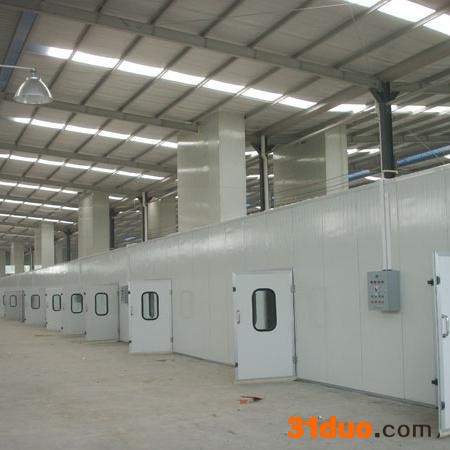 无尘喷漆房介绍 1.无尘喷漆房(喷漆室)房体采用子母插式保温喷塑墙板,密封及保温性能好,房体侧面装有工作门,方便工作人员进出;?2.铝合金包边大门,门中央装有观察窗,可随时观察房内动态。选用低噪音高风量风机,确保喷漆效果;?3.无尘喷漆房根据过滤原理可分为干式喷漆房(较为普遍)和湿式喷漆房(水帘或喷淋式喷漆房)。 家具无尘喷漆房