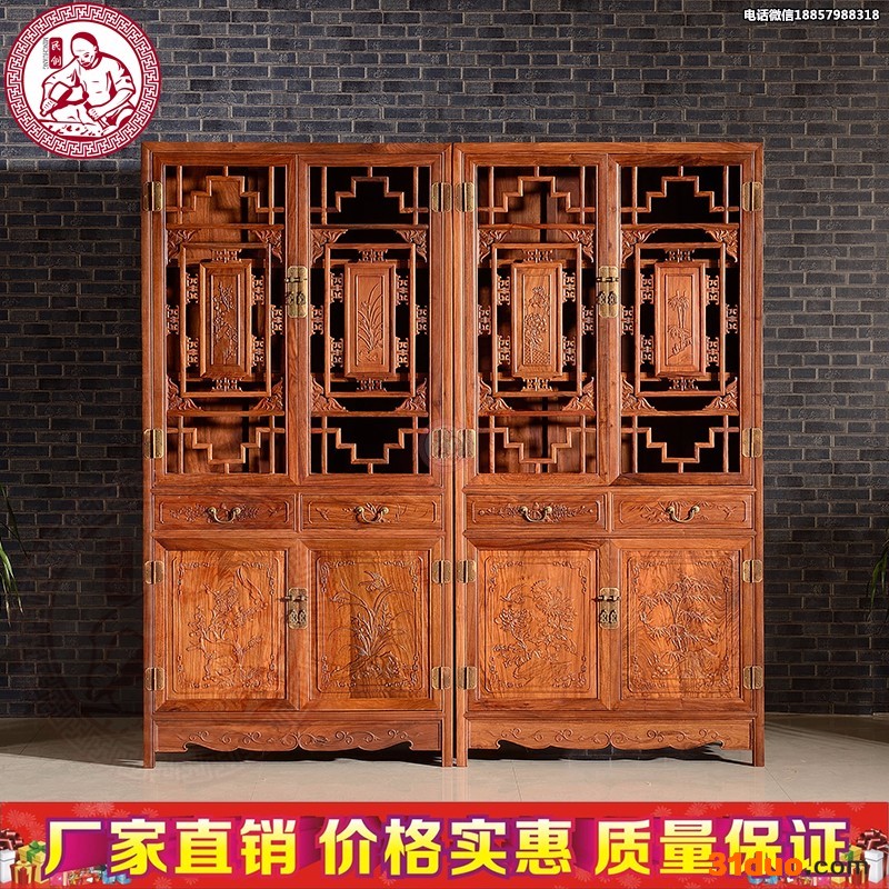 东阳民创红木家具非洲黄花梨木实木中式仿古梅兰竹菊带门书柜书架