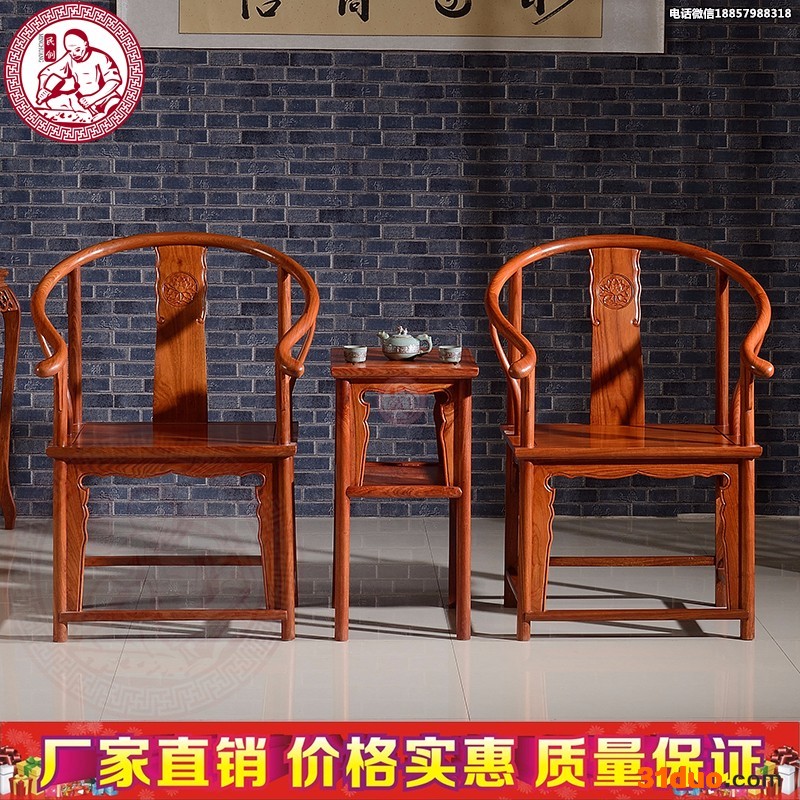 东阳红木家具非洲花梨木圈椅三件套全实木客厅会客椅组合中式古典