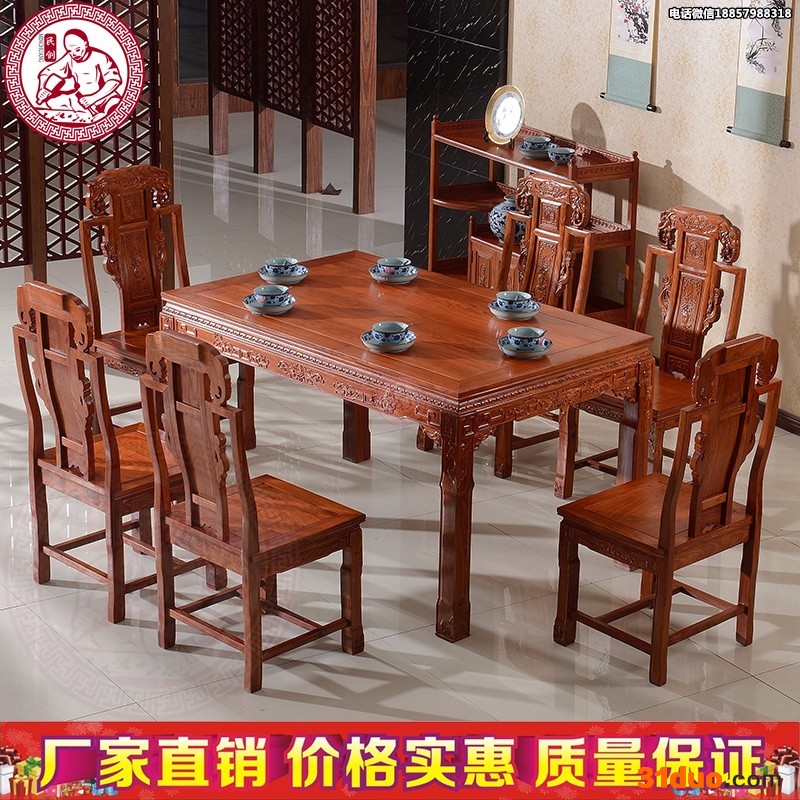 东阳红木家具非洲花梨木长方形餐桌六6人吃饭桌椅子组合中式实木