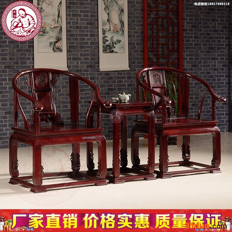 东阳民创红木家具直销非洲酸枝木皇宫椅茶几三件套实木圈椅子