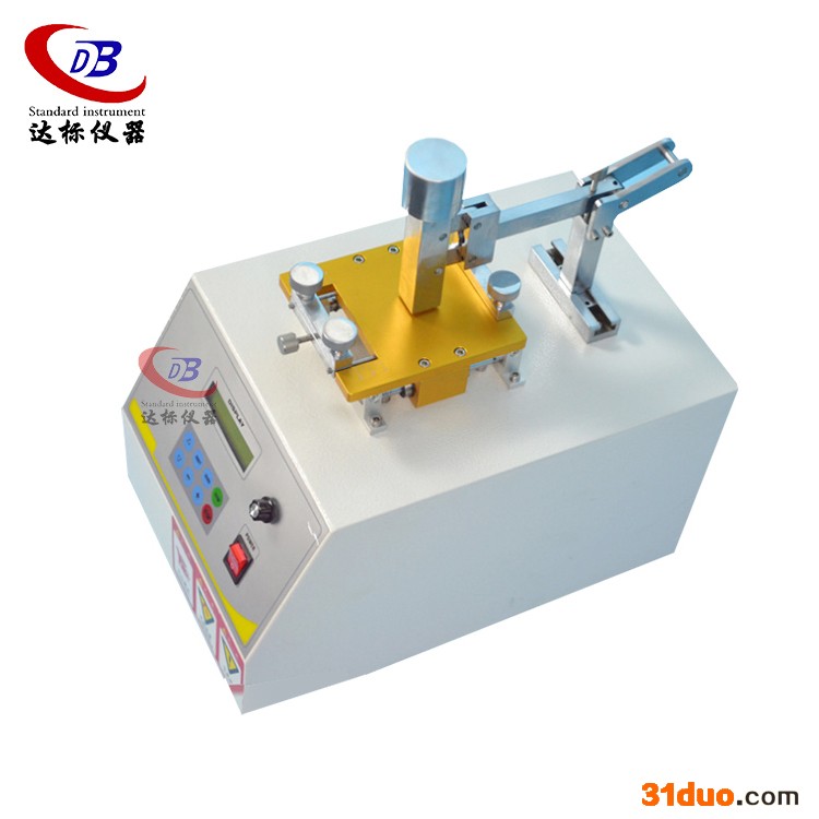 仅参考ISO/105,ASTM/D2054,AATCC/8,JIS/L0849 ISO-11640、SATRA PM173、QB/T2537等标准 本机适用于经染色后的皮革类,纺织类等材料经摩擦后之受损及脱色程度测试 本测试仪是以干燥或湿润的羊毛毡置于摩擦槌表面,经一定行程及速度往复摩擦夹在摩擦台上的试片一定次数后,评定其受损及脱色程度。 IULTCS皮革摩擦色牢度试验机规格: