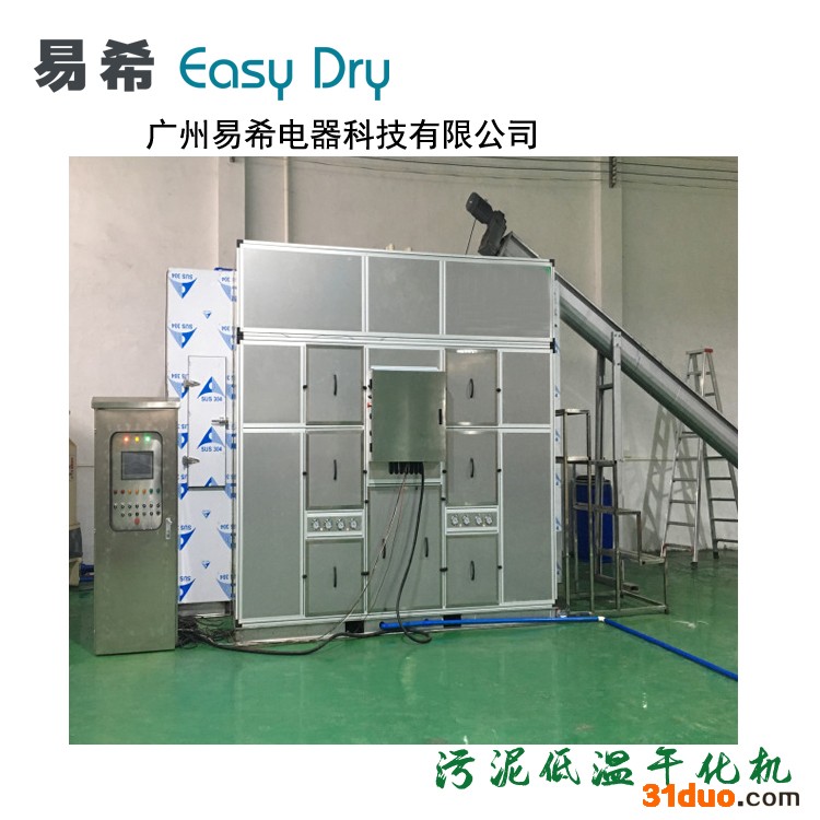 易希节能创新研发的污泥低温干化设备,是利用低温热泵除湿原理,采用对流热风干燥的方式对网带上的湿料污泥进行脱水干化减量,整套系统全密闭式设计,干燥热风无热损。可直接将污水或含水率83%的污泥干化至含水率10%-30%干泥,减量可高达90%,有效杀菌高达90%,低能耗,无污染,广泛应用于市政污泥和工业污泥(印染、造纸、电镀、化工、皮革、制药等)干化减量,10%-30%含水率的干泥后期可进行气化、掺烧、堆肥或建材原料等无害资源化处置。