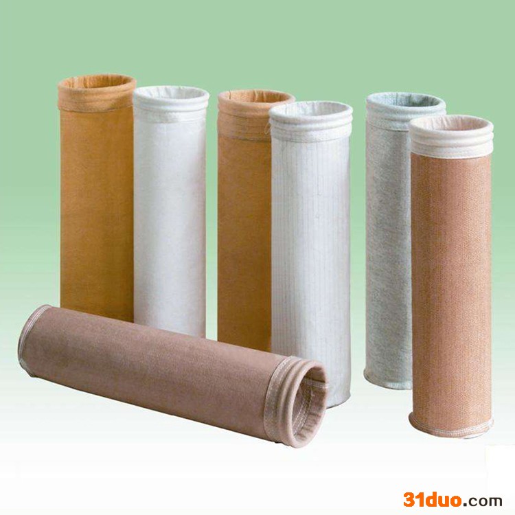 二、中温布袋:近几年袋式除尘技术行业的飞速发展,中国开始使用进口的合成纤维开发了可以适应较为恶劣的工况条件,超长使用寿命的高性能的过滤材料。目前较为常见的中温滤材有芳纶纤维、PPS系列纤维通过浸扎、防水、防油、防腐蚀工艺处理,从而达到理想的效果;三、高温布袋:高温布袋主要由P84、膨体玻璃纤维、超细玻璃纤维等耐高温纤维经过纺织、无纺工艺加工而成,具有热稳定性好、过滤效率高、使用寿命长等特点。主要应用于各种高温烟气状况下的除尘器;对工况环境恶劣的部分采用DWD高温布袋,而普通集尘部分采用涤纶布袋。