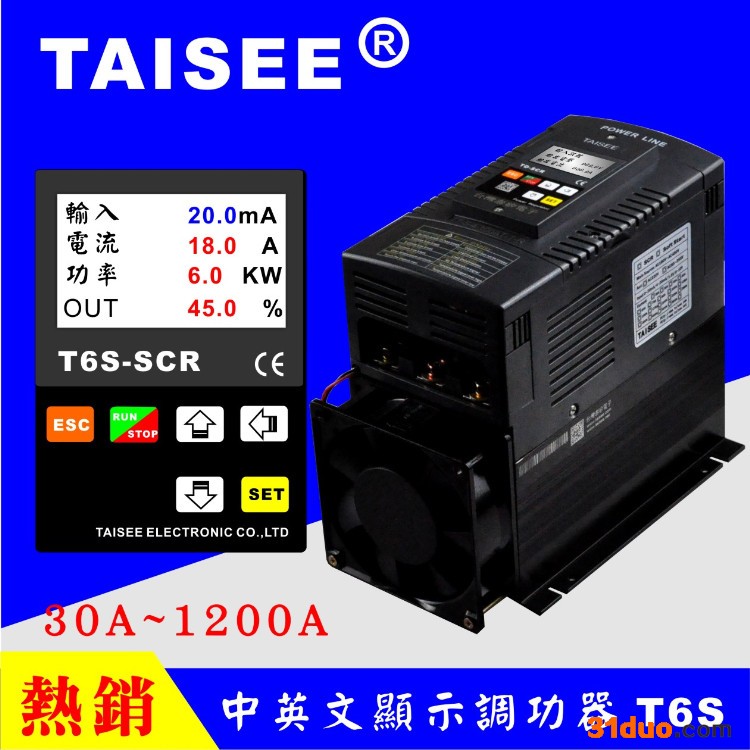 TAISEE 泰矽电子有限公司专业生产工业自动控制组件及各种控制器【SCR、数位式电力调整器、PID温度控制器、计数器、转速器、线速表、频率表、讯号转换器、温度转换器、讯号讯发器、米轮、码轮】,适用于各种远红外线电热丝及各种温度、湿度控制。由25A~1200A规格齐全,流水线大量生产,提高质量,降低成本,以稳定质量及完善的售后服务体系营销于市场,并以热诚的心为客户服务,为客户创造更大的利益,与客户建立良好的信誉!【范围:IR远红外线烤箱,UV光固机,贴合机,压花机,高温熔炉,真空电镀,粉末冶金,电线电缆机械,押出机,食品机械,窑炉烤箱,中央空调恒温恒湿,退火炉,各种工业温度控制等】。
