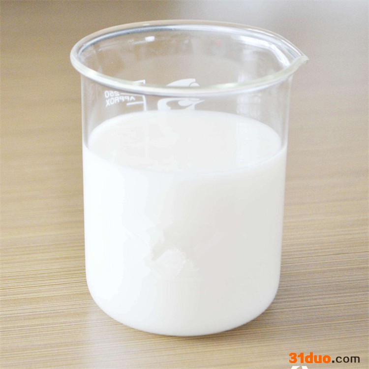 苯丙乳液 耐洗擦性能好,而且耐户外老化广泛应用在胶粘剂、涂料等领域。 乳白色液体,带蓝光。固体含量40~50%,粘度80~2000mPa·s,单体残留量0.5%,PH值8~9。苯丙乳液附着力好,胶膜透明,耐水、耐油、耐热、耐老化性能良好。 单体在水中由乳化剂分散成乳液状态的聚合,称做乳液聚合。常规乳液聚合体系主要由单体、水、水溶性引发剂、水溶性乳化剂四部分组成,工业上应用的配方则要复杂得多。乳液聚合往往是共聚合,除主单体外,还可能有第二、第三单体。 乳液聚合的优点: (1)水作介质,价廉安全。胶乳粘度低,有利于搅拌传热、输送和连续生产; (2)聚合速率快,同时产物分子量高,聚合可以在较低的温度下进行; (3)有利于胶乳的直接使用和环境友好的产品的生产,如水乳漆,粘结剂,纸张,皮革,织物处理剂等。 乳液聚合的缺点: (1)需要固体产品时,乳液需经凝聚、洗涤、脱水、干燥等工序,成本较高; (2)产品中留有乳化剂等杂质,难以完全除净,有损电性能等。